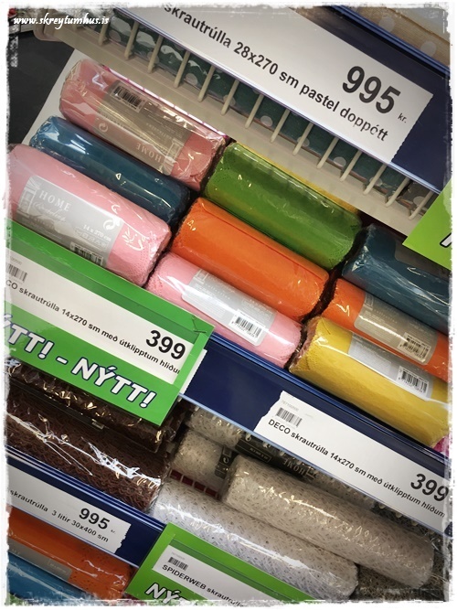 …og minni skrautrúllur sem væru t.d. snilld á borðin hjá gestunum, og nota löberrenningana á háborðið á móti…