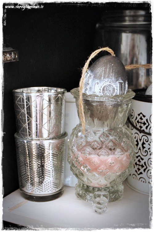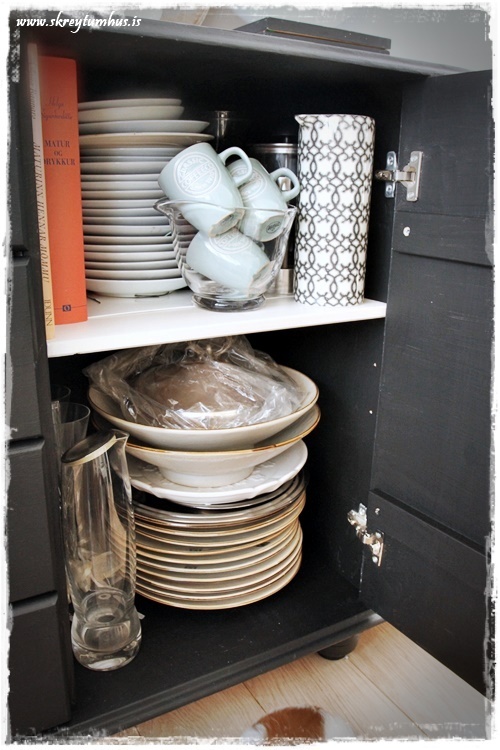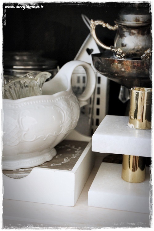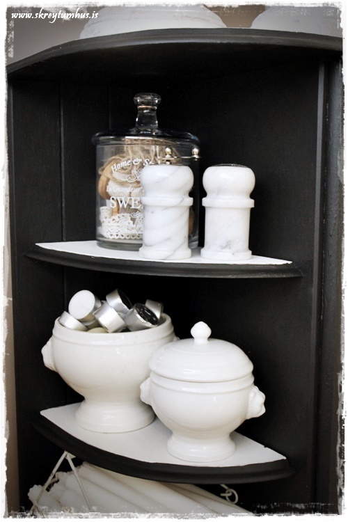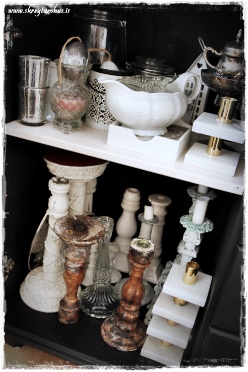 …hinn skápurinn – já ég á við kertastjakavandamál á háu stigi. Ég hélt hillunni sjálfri enn hvítri, og er mjög ánægð með það…
