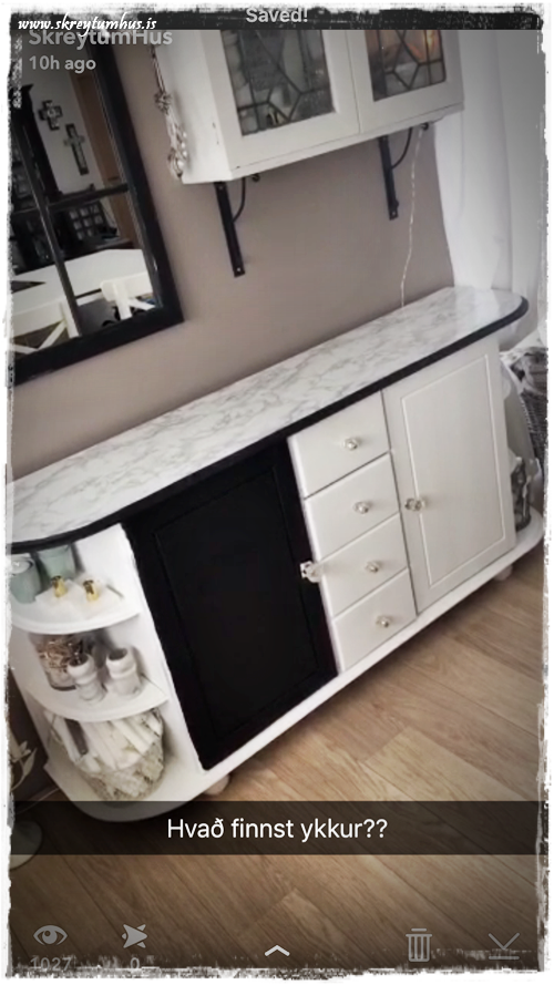 …og eins og sést á myndinni þá var ég í þessum pælingum í “beinni” á snappinu (soffiadoggg) og ákvað að mála fyrst bara eina hurð – svona á meðan ég var að reyna að ákveða mig…