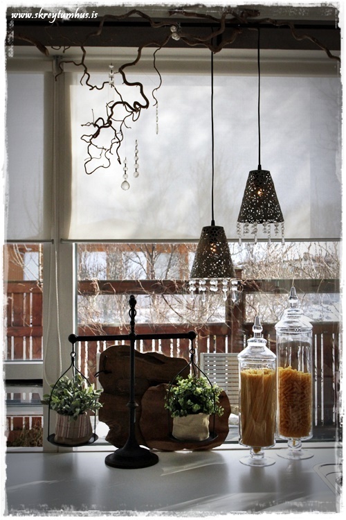 …svo tvö önnur trébretti þarna í glugganum og ég færði vigtina mína inn í eldhúsið úr stofunni…