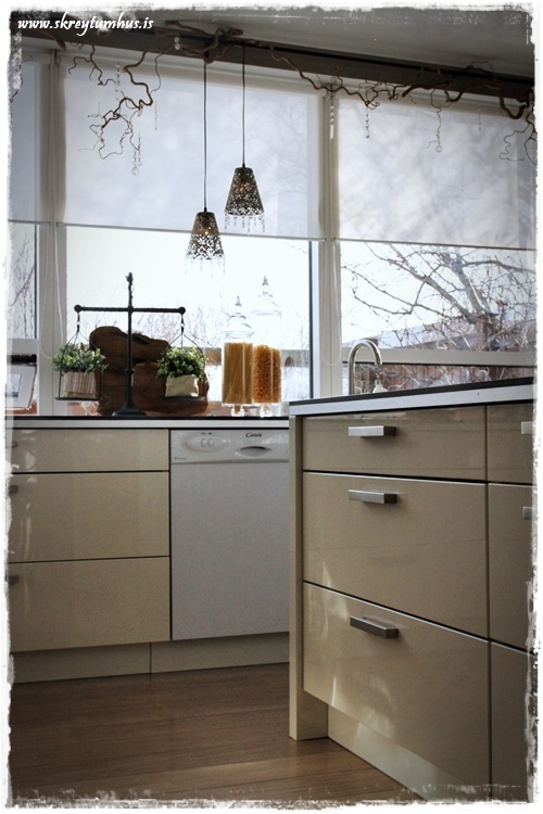 …þessi mynd sýnir líka ágætlega hvað innréttingin er ekki hreinhvít, hún er meira svona off white, sést vel á muninum við uppþvottavélina…