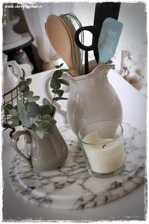 …en mér finnst hann alveg ferlega flottur og kemur töff út á eyjunni í eldhúsinu.  Vinsamlegast hunsið sleifina sem á stendur merry x-mas, mér finnst hún bara svo falleg á litinn 🙂