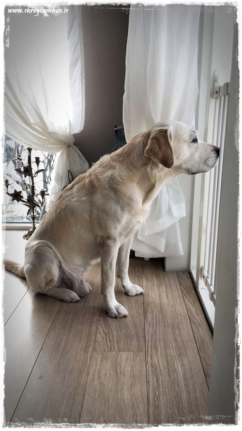 …sem kúrir dauðþreyttur á meðan Stormurinn kannar út um gluggann…