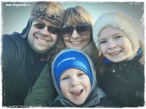 …og litla famelían frekar freðin en sátt…