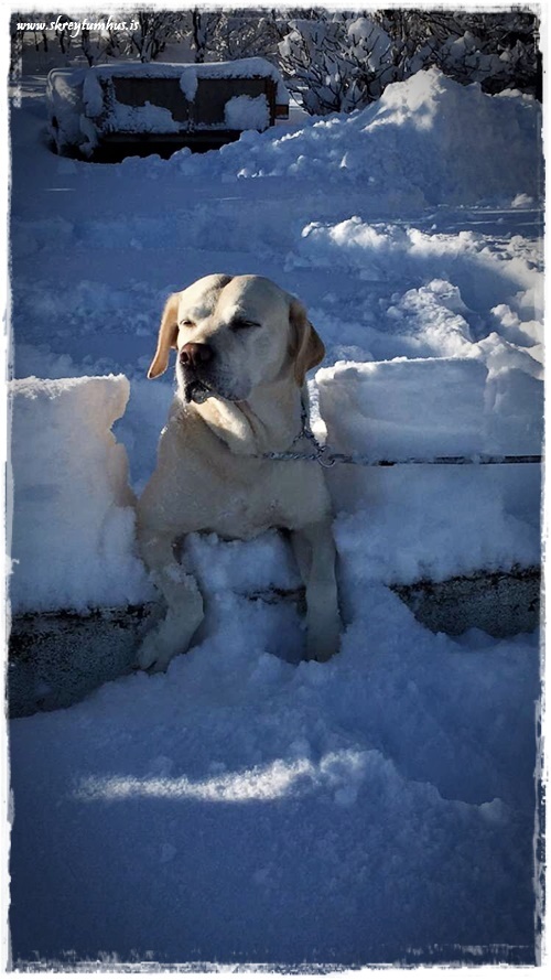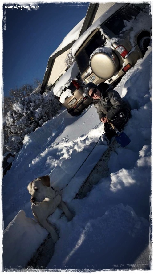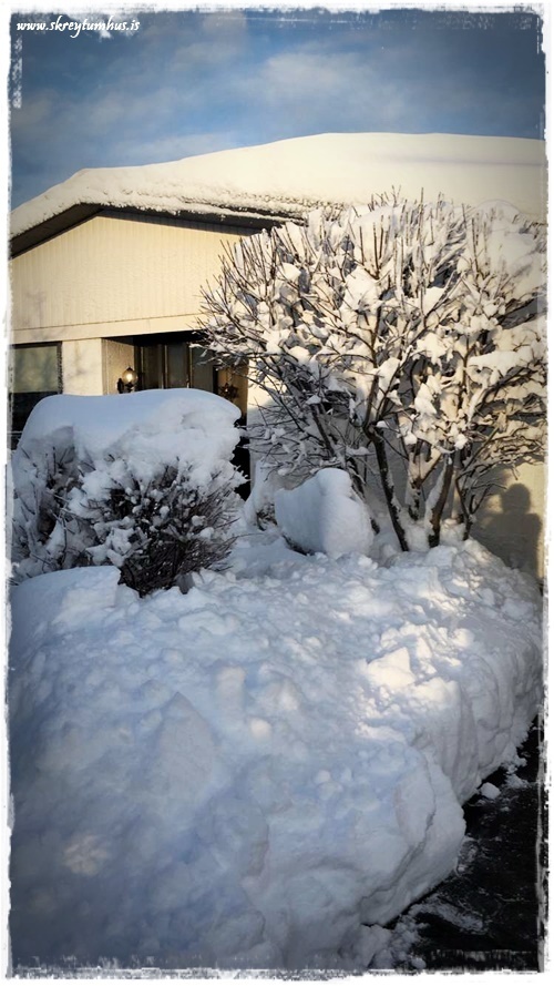 …þó að vísu veitti ekki af því að moka – og sjáið bara hrúguna ofan á runnanum…