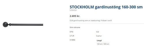 …og eins fannst mér alveg möst að hafa svartar gardínustangir með, svona til þess að krydda aðeins upp á þetta allt saman. Ég er líka með Stockholm-stangirnar í stofunni og eldhúsinu hjá mér og er mjög ánægð með þær. Þær eru mjög fallega breiðar og svolítið massífar, big like…