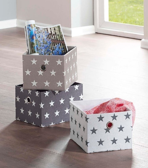 …í skápinn notuðum við Stars-körfur í stíl við pokana…