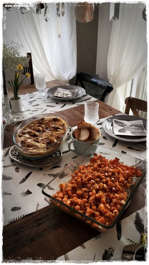 …ég lagði síðan á páskaborð, sem ég hlakka til að sýna ykkur myndir af, en þegar ég var búin að mynda – þá þurfti auðvitað að elda eitthvað…
