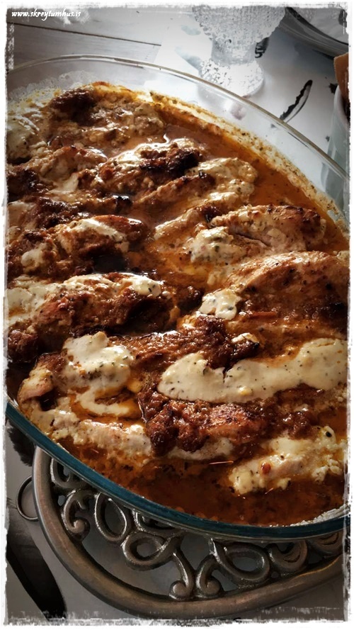 Látið inn í 180°c heitan ofn í um hálftíma eða þar til kjúklingabringurnar eru fulleldaðar.
