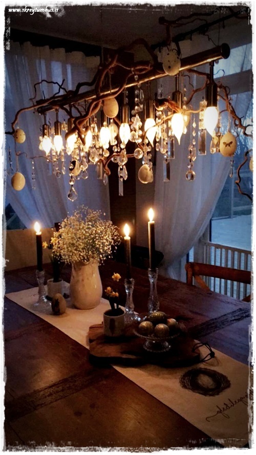 Heil og sæl og takk fyrir flotta, fræðandi og skemmtilega síðu. Ég var að velta fyrir mér hvernig þú hengdir upp nornagreinina bæði í eldhúsinu og svo á ljósakrónuna?
