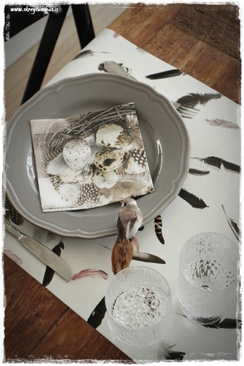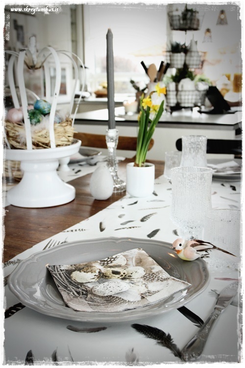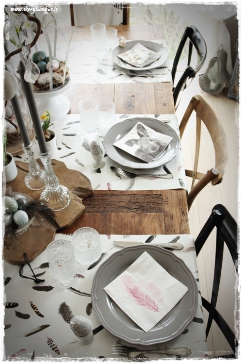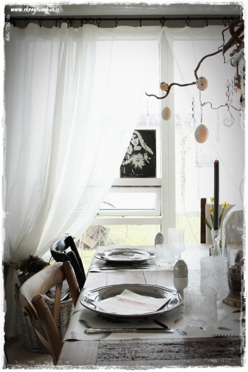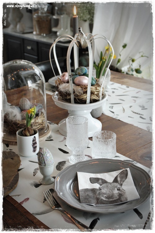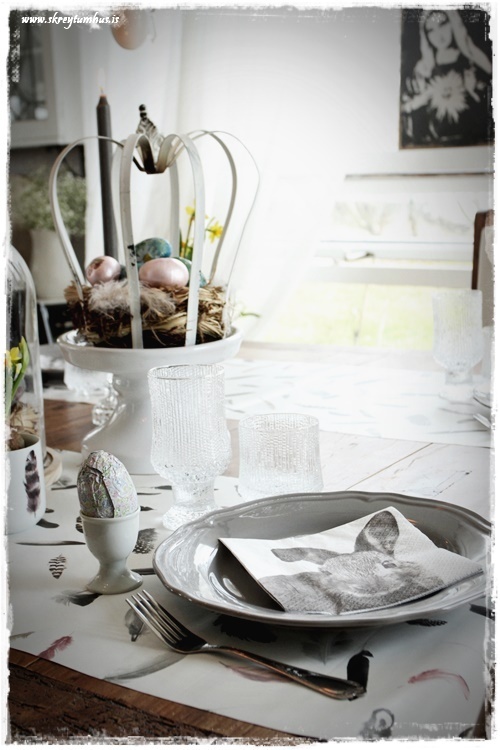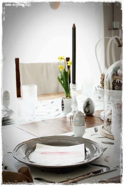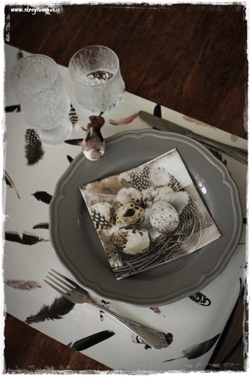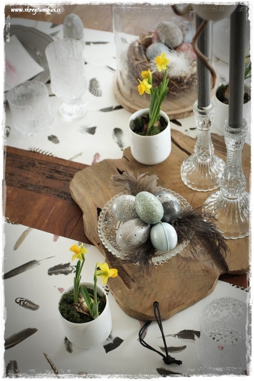 Mjög fallegt páskaborð hjá þér! Og þetta er einmitt ástæðan fyrir því að mér finnst bloggið þitt svo frábært, og þú líka…þú gerir þetta eins og þú vilt hafa þetta en ert ekki að elta einhverjar tískustefnur eða þóknast öðrum. Það er enginn sem segir að það þurfi að gera allt nákvæmlega eins og er á netinu, enda væri það bara rugl. Maður tekur brot af því besta þar sem maður sér það og blandar svo eftir sínu höfði eða notar bara það sem maður á 🙂 Kíp öpp ðe gúdd vörk mæ djér <3