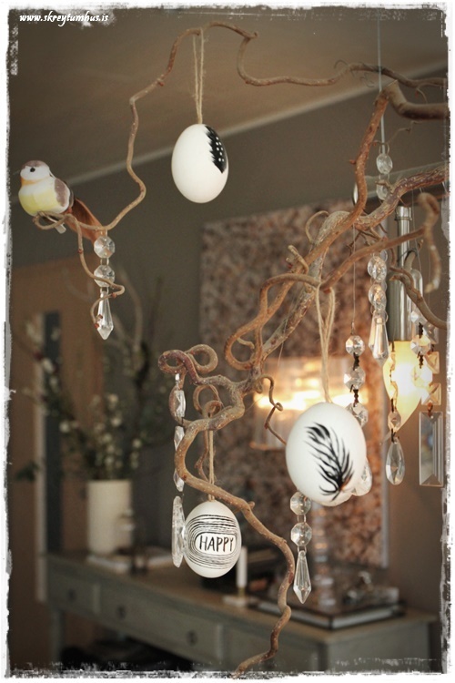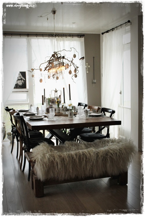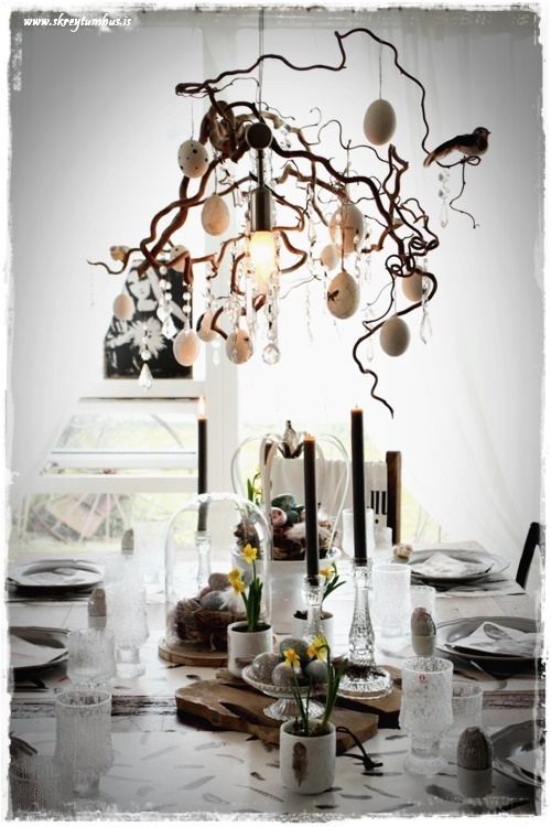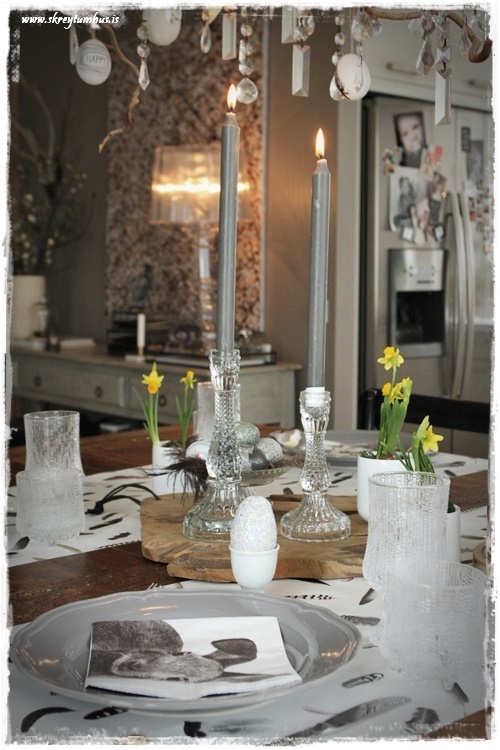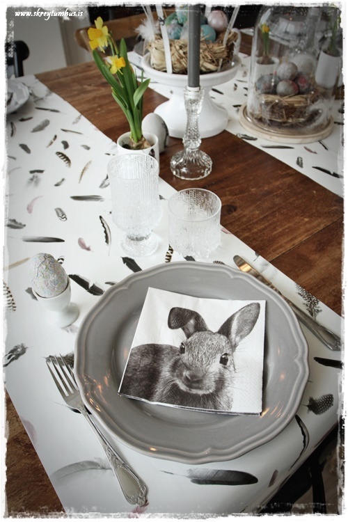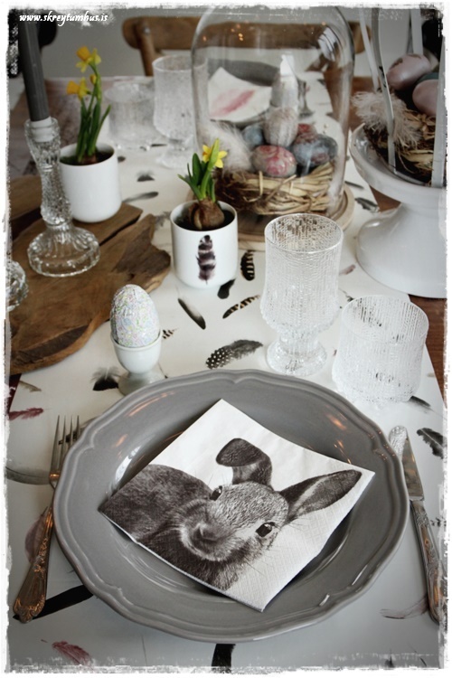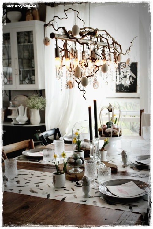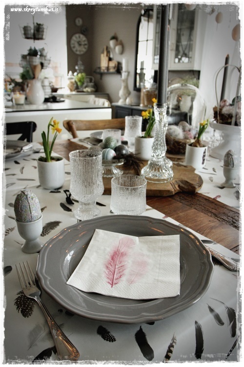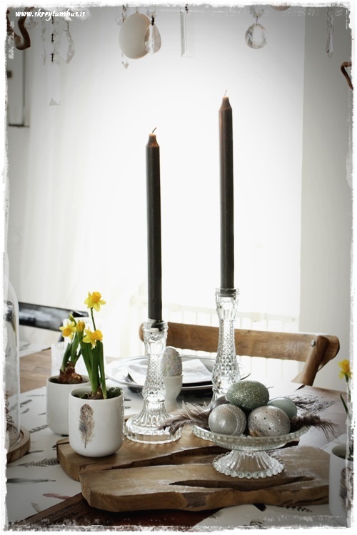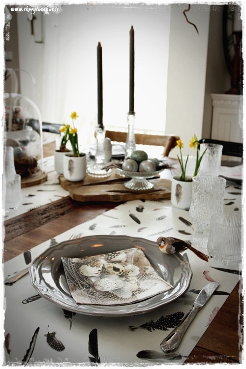 Mjög fallegt páskaborð hjá þér! Og þetta er einmitt ástæðan fyrir því að mér finnst bloggið þitt svo frábært, og þú líka…þú gerir þetta eins og þú vilt hafa þetta en ert ekki að elta einhverjar tískustefnur eða þóknast öðrum. Það er enginn sem segir að það þurfi að gera allt nákvæmlega eins og er á netinu, enda væri það bara rugl. Maður tekur brot af því besta þar sem maður sér það og blandar svo eftir sínu höfði eða notar bara það sem maður á 🙂 Kíp öpp ðe gúdd vörk mæ djér <3