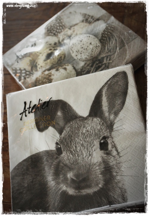 …í Hagkaup rakst ég svo á þessar servéttur sem mér þótti alveg yndislega fallegar. Mér finnst líka svo gaman að blanda saman mismunandi servéttum.