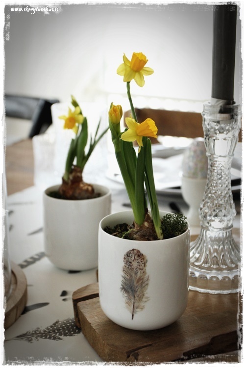 …þetta er mjög einfalt að gera, en athugið að páskaliljurnar eru ekki að standa mjög lengi og fara fljótt að gulna á blöðunum…