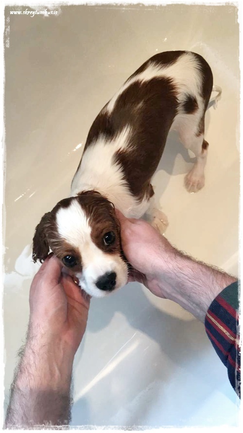 …og sökudólgurinn alsæll að vera laus við baðferð…