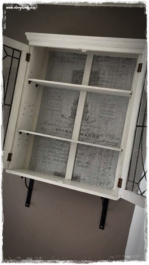 Skápurinn er dásamlegur, fallegur og rómantískur. Hann passar svo vel inn í heildarmyndina hjá þér. Ég féll í stafi yfir mæliskeiðunum sem hanga á skápnum. Elska svona gamla og fallega nytjahluti.