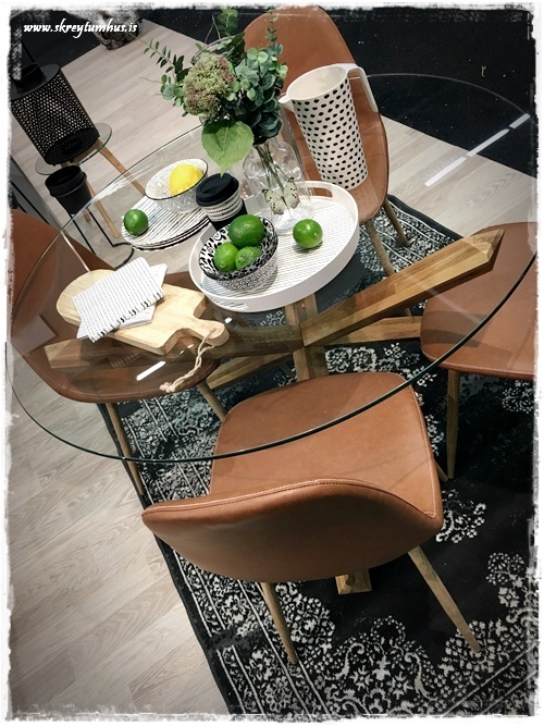 Við notuðum SASKIA glerborð með eikarfótum sem mér finnst alveg ferlega flott…