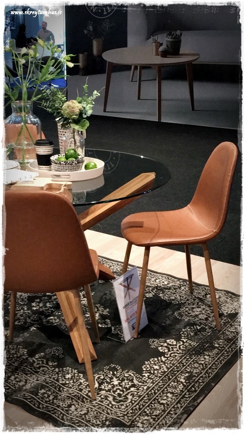 …svo var það hitt borðið okkar, það heitir GADESKOV og er með rosalega fallegum svörtum fótum – virkilega töff. Við það notuðum við síðan rustic útgáfuna af AJSTRUP, hann er kallaður brúnn, en er meira svona brúngrár á litinn…