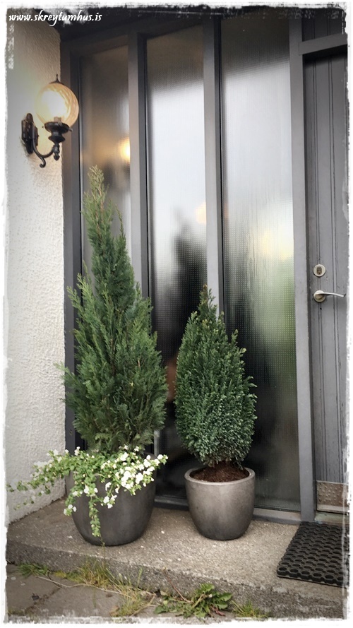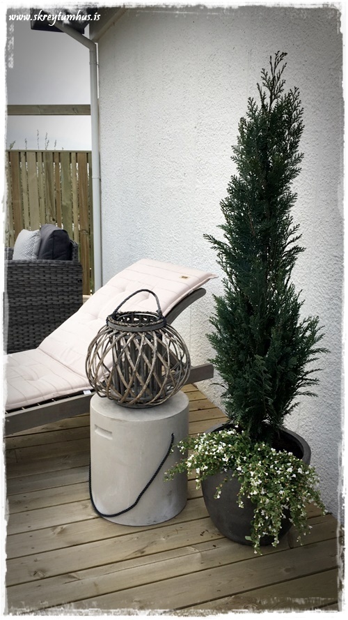 …ég keypti báða Sýprisana í Garðheimum, fannst þeir mjög fallegir. Svo keypti ég mér loks nýja útipotta í Blómaval, en ég hef verið með sömu pottana síðan 2008 og hef nokkrum sinnum spreyjað þá svarta á vorin. Sem er góð leið til þess að fríska upp á útipotta (sjá hér)…