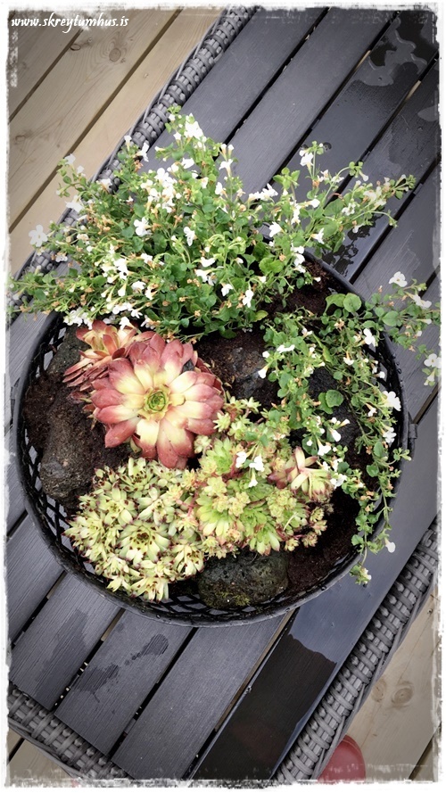 …einnig setti ég nokkra steina með – því þeir passa svo með þykkblöðungunum…