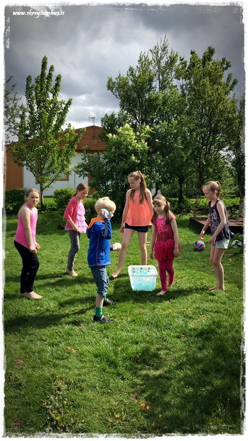 …verandi Ísland, þá er auðvitað ekki hægt að treysta á bláan himinn í allar áttir – en veðrið var dásamlegt og hlýtt – og þessi fóru í vatnsblöðruslag…
