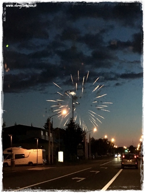 …og Selfoss tók á móti oss með flugeldasýningu.