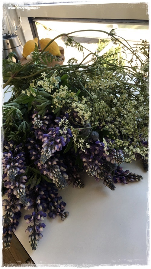 Finnst lúpínan ofboðslega falleg og hún er sko í óhóflegu magni hérna heima 🙂 Minna um kerfil her en ekki langt í hann. Hef oft hugsað um að tína lúpínuvönd til að hafa í vasa en aldrei látið verða af því….