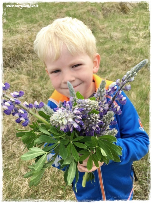 …og mínir krakkar elska það alveg hreint að týna í vönd og koma heim færandi hendi…