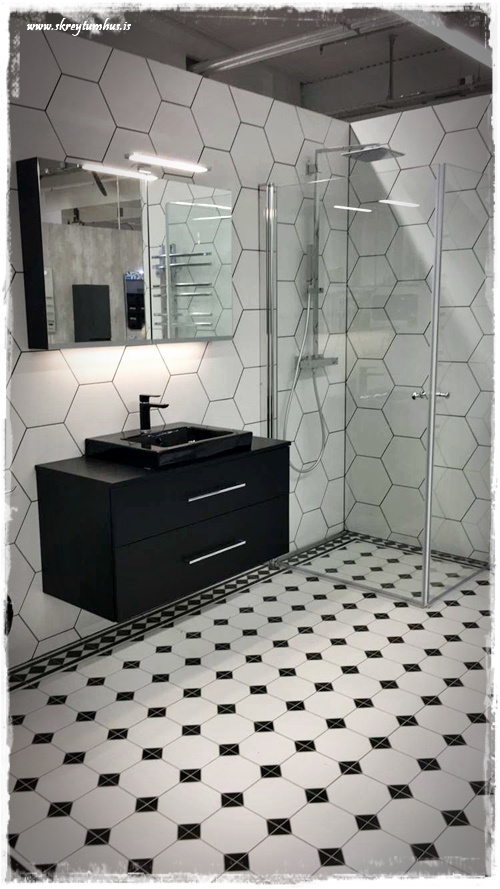 Hmmmm….ljósið með trjánum á….og flísarnar….og er alltaf svag fyrir krukkum….og auðvitað er strákurinn í speglinum æði 😉