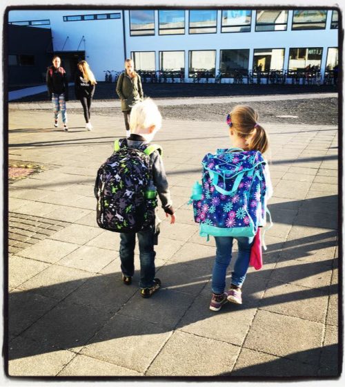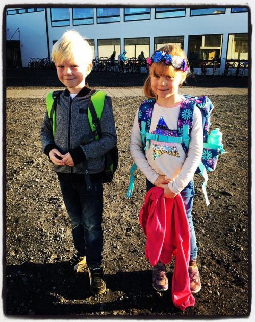 …og hreint ótrúlegur munur frá því í vor – þegar þau vinirnir gengu saman inn í skólann á fyrsta degi…