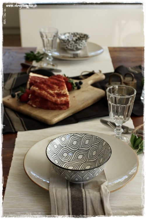 …kemur líka fallega út að setja litla grein svona við hliðina á diskunum…