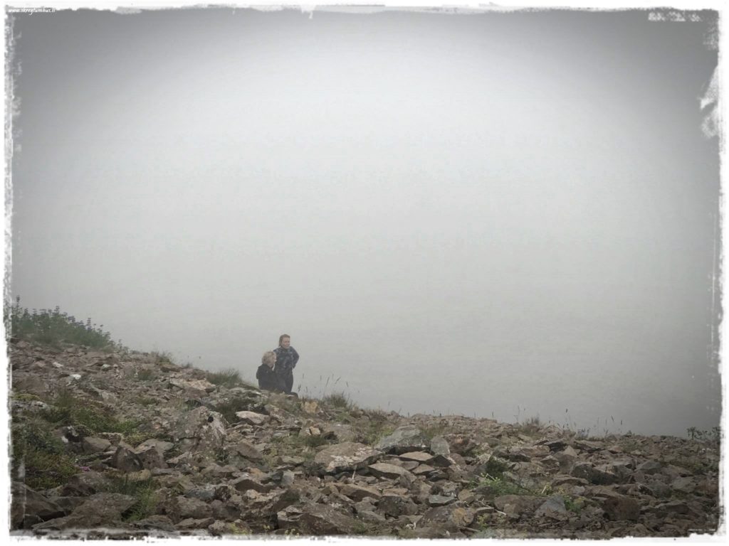 …á þessari mynd sést Vala að tala í mig kjark, en ég var að reyna að sannfæra hana um að skilja mig bara eftir. Ég gæti vel bara dáið þarna í hlíðinni, ég hefði lifað góðu lífi…