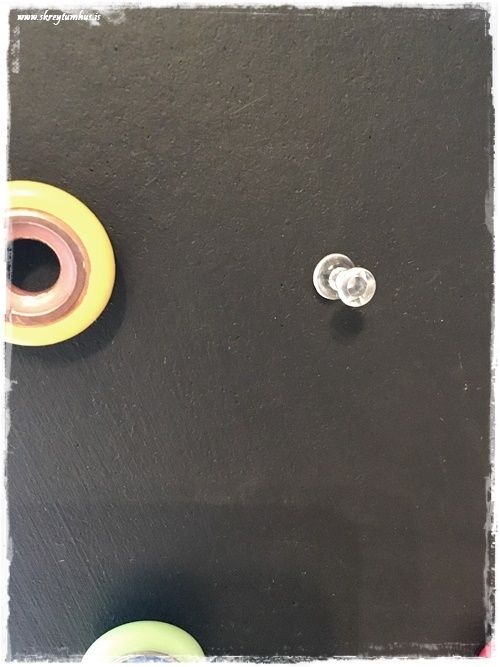 …á milli glugganna eru síðan bara tvær korktöflur, sem voru málaðar svartar…