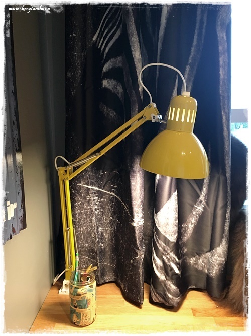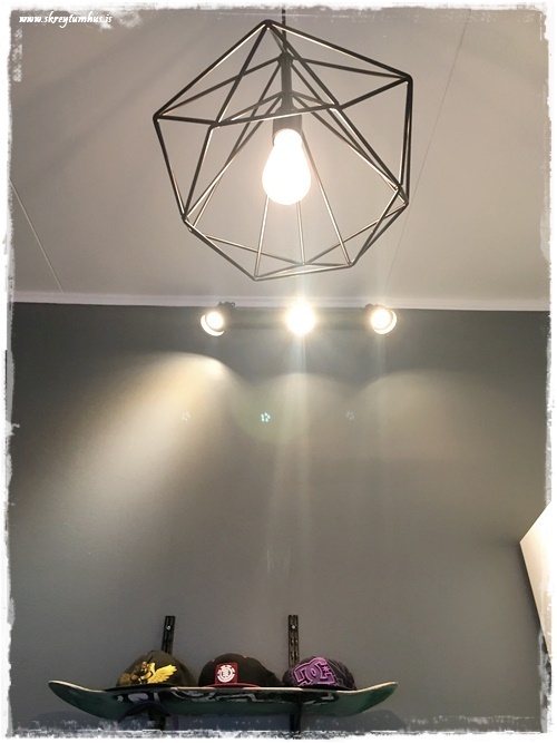 …en önnur snjöll lausn sem móðirinn fann upp á, var að bæta við kösturm á vegginn – til þess að vera með staðbundna lýsingu á vissa staði í herberginu, mjög gott mál…