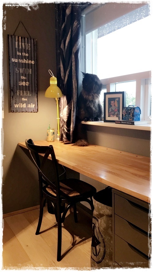 Hann vildi hafa skrifborð.  Geta haft tölvu á borðinu.  Hugsanlega pláss fyrir sjónvarp í framtíðinni.  Kózý og notalegt.