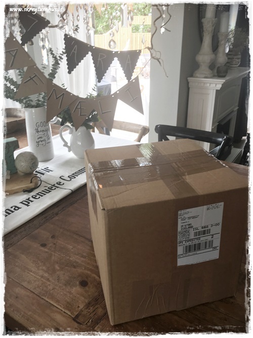 …ég var smá stressuð á hvort að hann kæmi óbrotinn í hús, en það voru óþarfa áhyggjur. Hann mætti á svæðið, eftir aðeins 3 daga og í svona kassa…