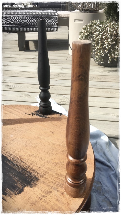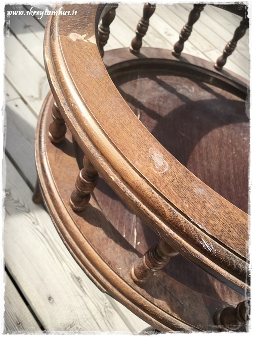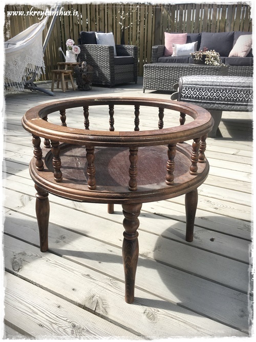 …eins og þetta hérna blómaborð – sem mamma og pabbi voru með heima hjá okkur hérna í denn. Það var orðið ansi hreint þreytt og mátti muna sinn fífil fegurri…