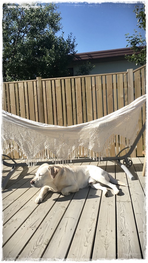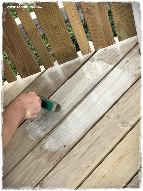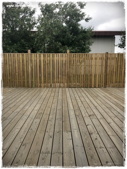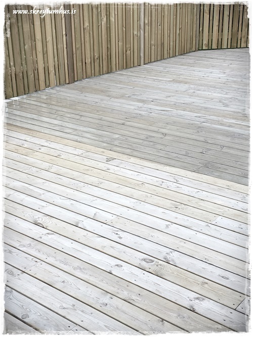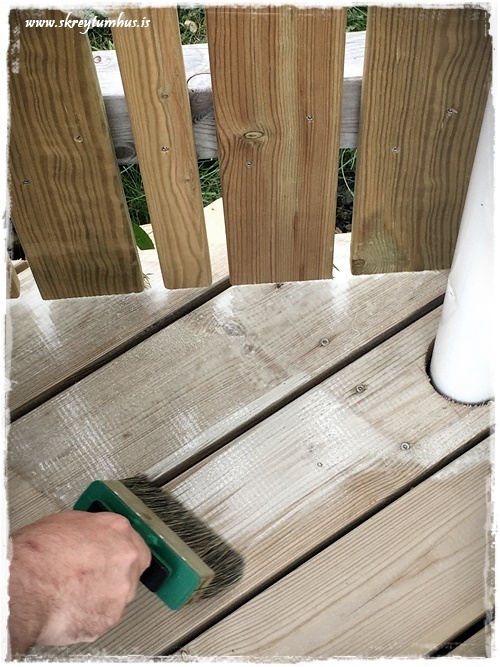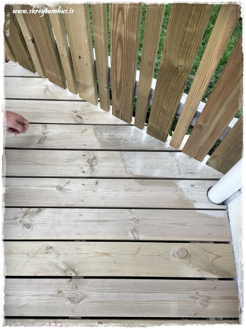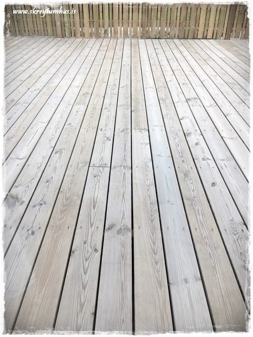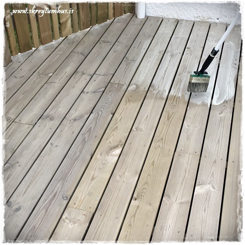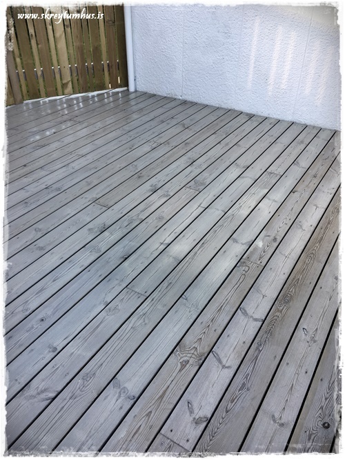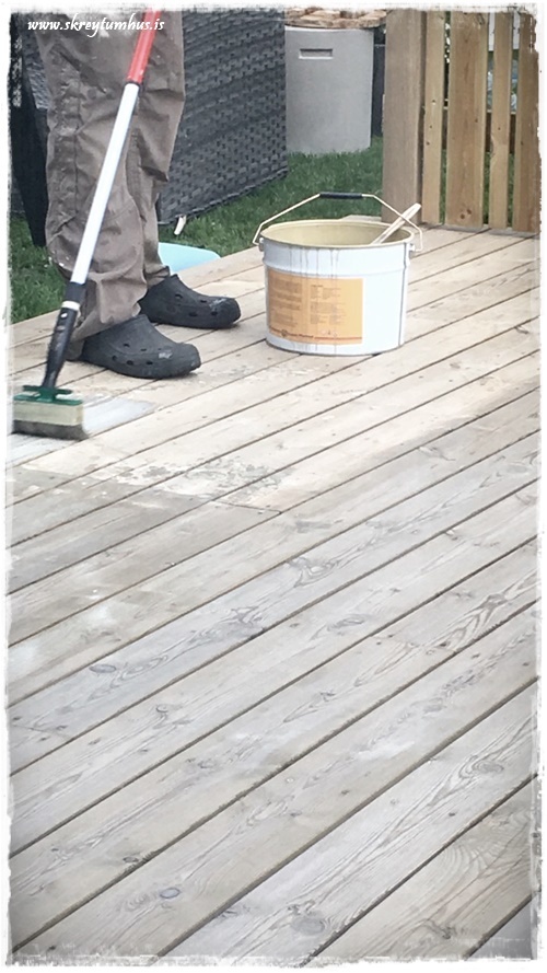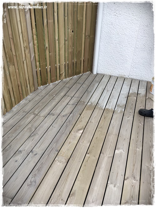 Flottur litur á pallinum! 🙂 Öfunda ykkur samt ekkert af því að þurfa að bera svona á hann 😉