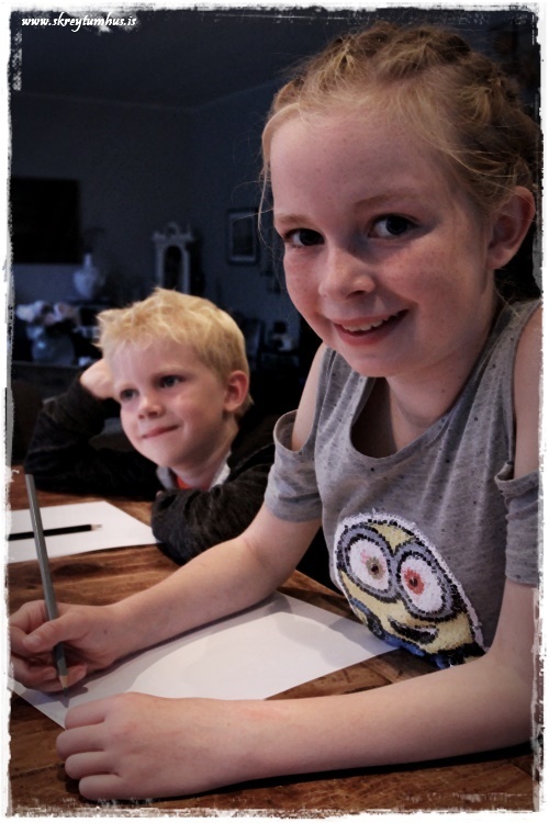 …þessi tvo voru í það minnsta alsæl – þarna eru þau að byrja að hanna bollana sína…