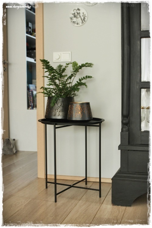 …og setti lítið bakkaborð sem ég fékk í Rúmfó um seinustu helgi – ég fékk óteljandi fyrirspurnir um það á Snappinu. Ég finn það reyndar ekki á heimasíðunni þeirra, en það heitir Jenslev og kostaði um 1990kr, og var líka til í hvítu og gráu…
