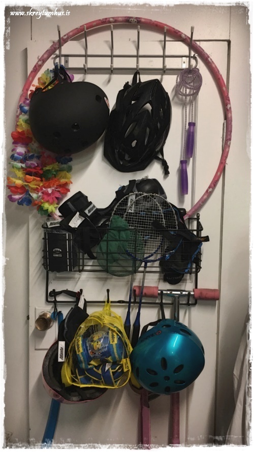 …reyndar tókum við smá til í skúrnum, og ég sýndi t.d. hvernig við komum heilum helling fyrir af krakkadóti á litlum fleti…