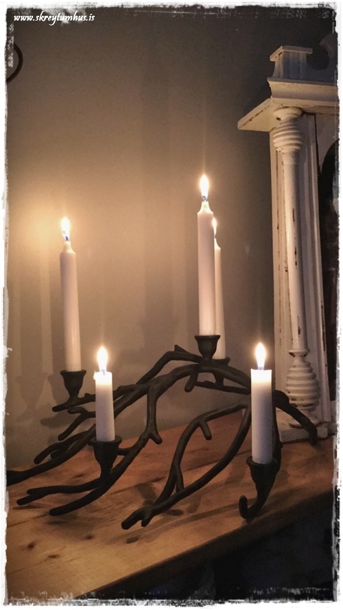 …og svo er haustið auðvitað komið og því kveikt enn meira á kertum en vanalega.  Þið kannist kannski við þennan stjaka úr H&M-póstinum (hér) um daginn, en ég fann þennan á Nytjamarkaði hérna heima fyrir nokkrum vikum…