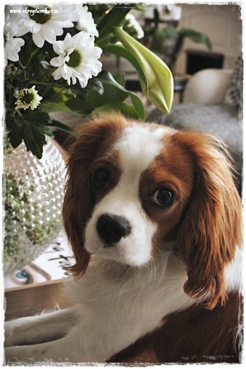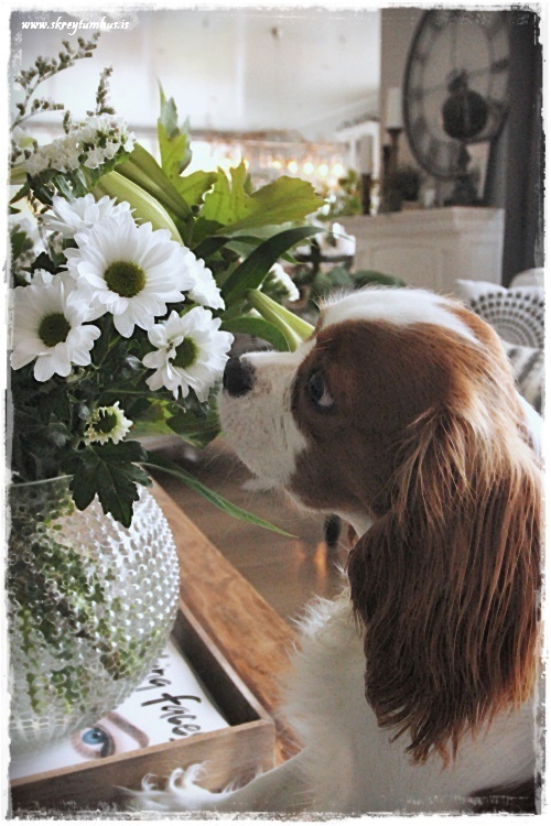Æðislega fallegur blómvöndur og gaman að sjá myndina þar sem Molinn litli sæti er að þefa af honum 🙂