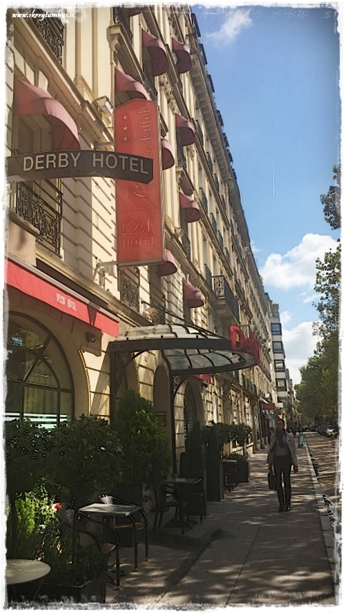 …hótelið okkar pöntuðum við á netinu. Í gegnum Booking.com og heitir það Derby Eiffel Hotel. Ekkert úber fínt hótel, en hreint og huggulegt bara. Það sem var síðan best við það, útsýnið…