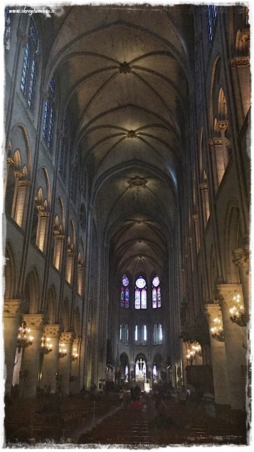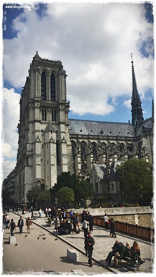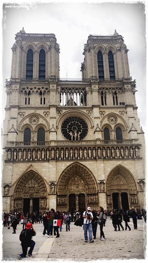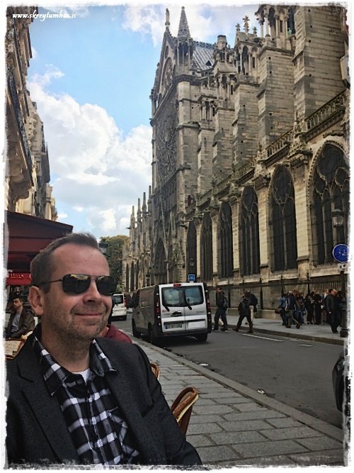 …við Notre Dame. Við fórum ekki upp á svalirnar að leita að Hringjaranum, en við fórum inn í kirkjuna…