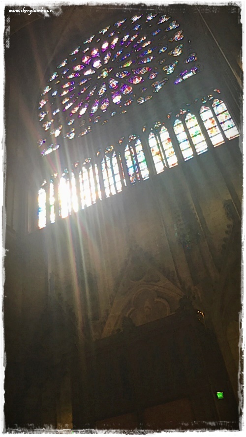 …gluggarnir eru stórbrotnir, og bara að sitja þarna inni og horfa á sólargeislana skína í gegn var eins og einhvers konar helgiathöfn…