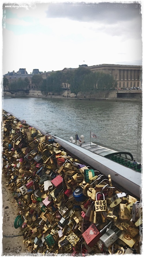 …fá Notre Dame löbbuðum við yfir til Louvre safnsins. Á leiðinni komum við að ástarbrúnni, þar sem elskendur festa lása sem stöfunum sínum á og kasta lyklinum í ánna…