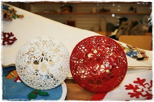 …heklaðar kúlur sem hægt er að stinga seríum innan í…