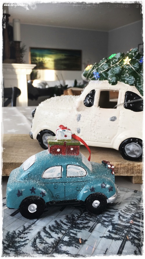 P.S. Er alltaf að leita að millistærðinni af rauða bílnum með jólatrénu á þakinu en finn hann hvergi….er hann bara til í Bíldshöfða? Hef ekki komist þangað enn…..