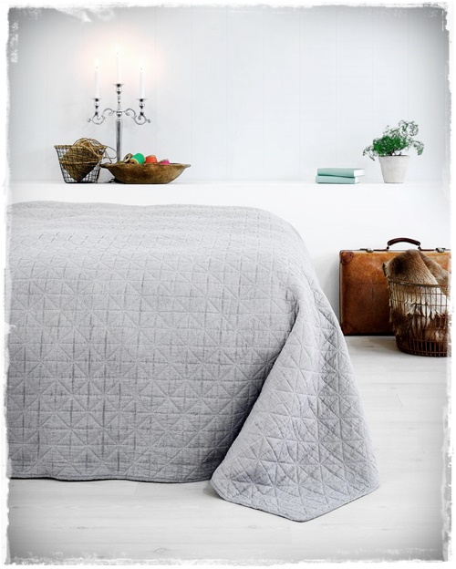 Grátt, stungið, rúmteppi – stílhreint og fallegt – 240×260